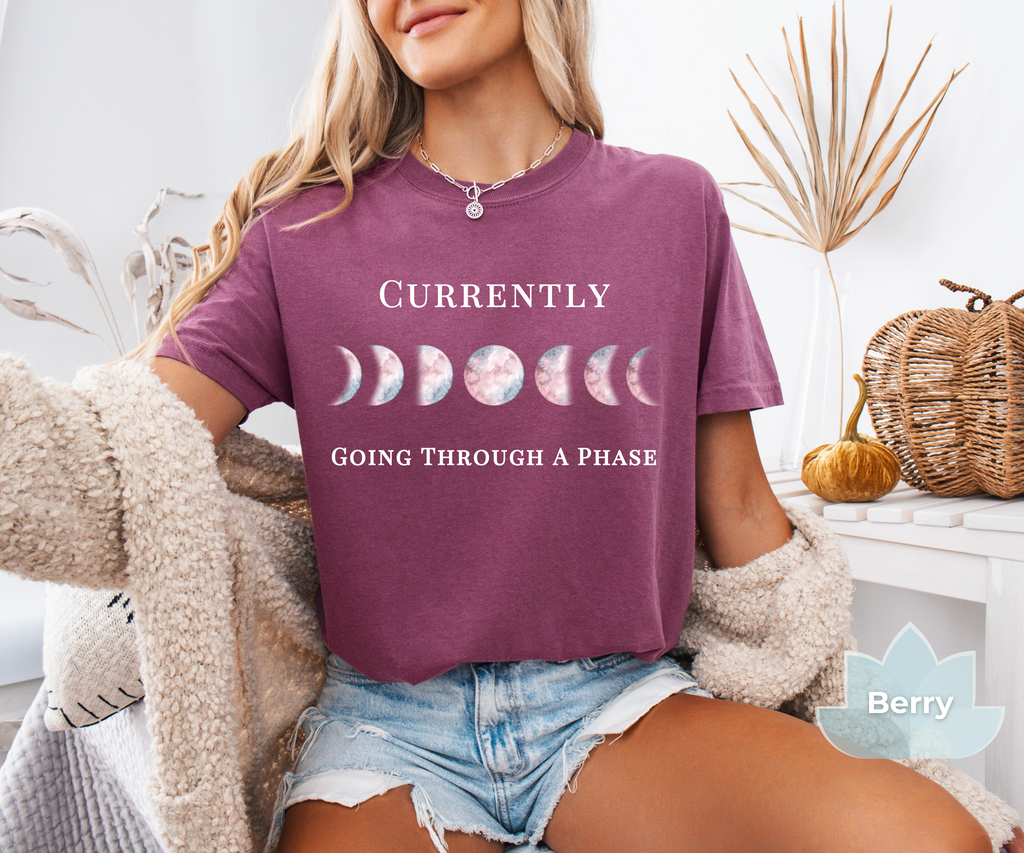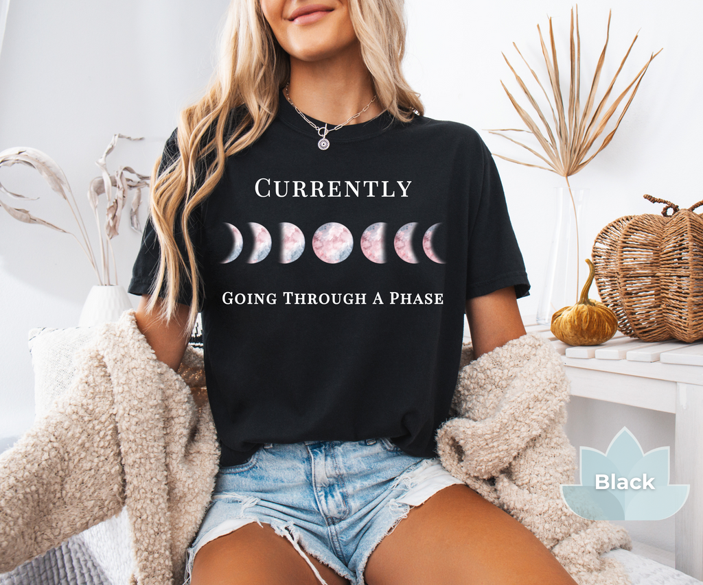A little cosmic and a little moody, our “Going Through a Phase” t-shirt blends celestial vibes with a playful twist on the moon phases. Elevate your wardrobe with this garment-dyed T-shirt, a blend of comfort and style that’s a perfect addition to your casual wardrobe. The gentle, muted colours create a relaxed vibe which you can match with an oversized look. Check out our Fit Guide in the product images.