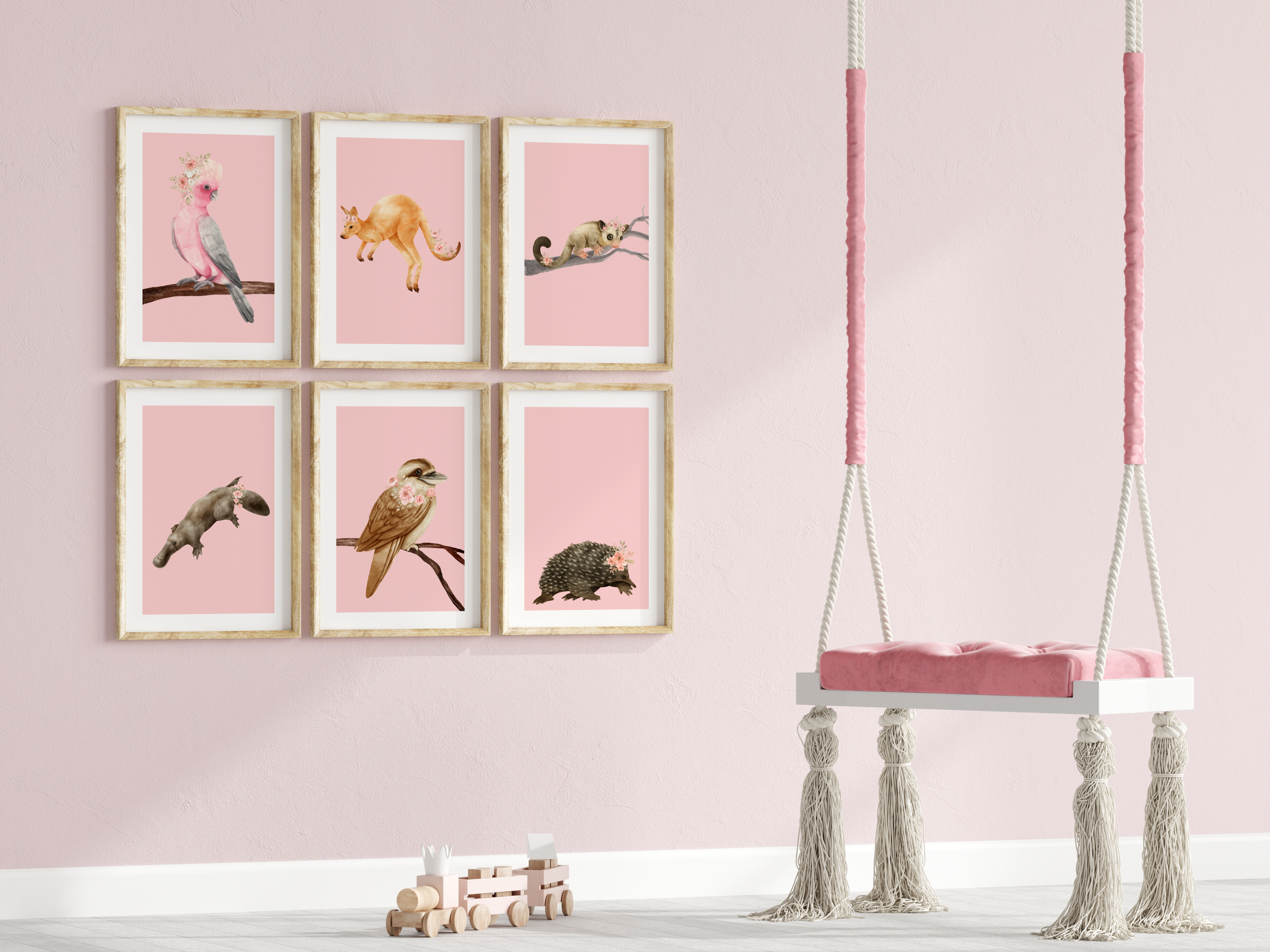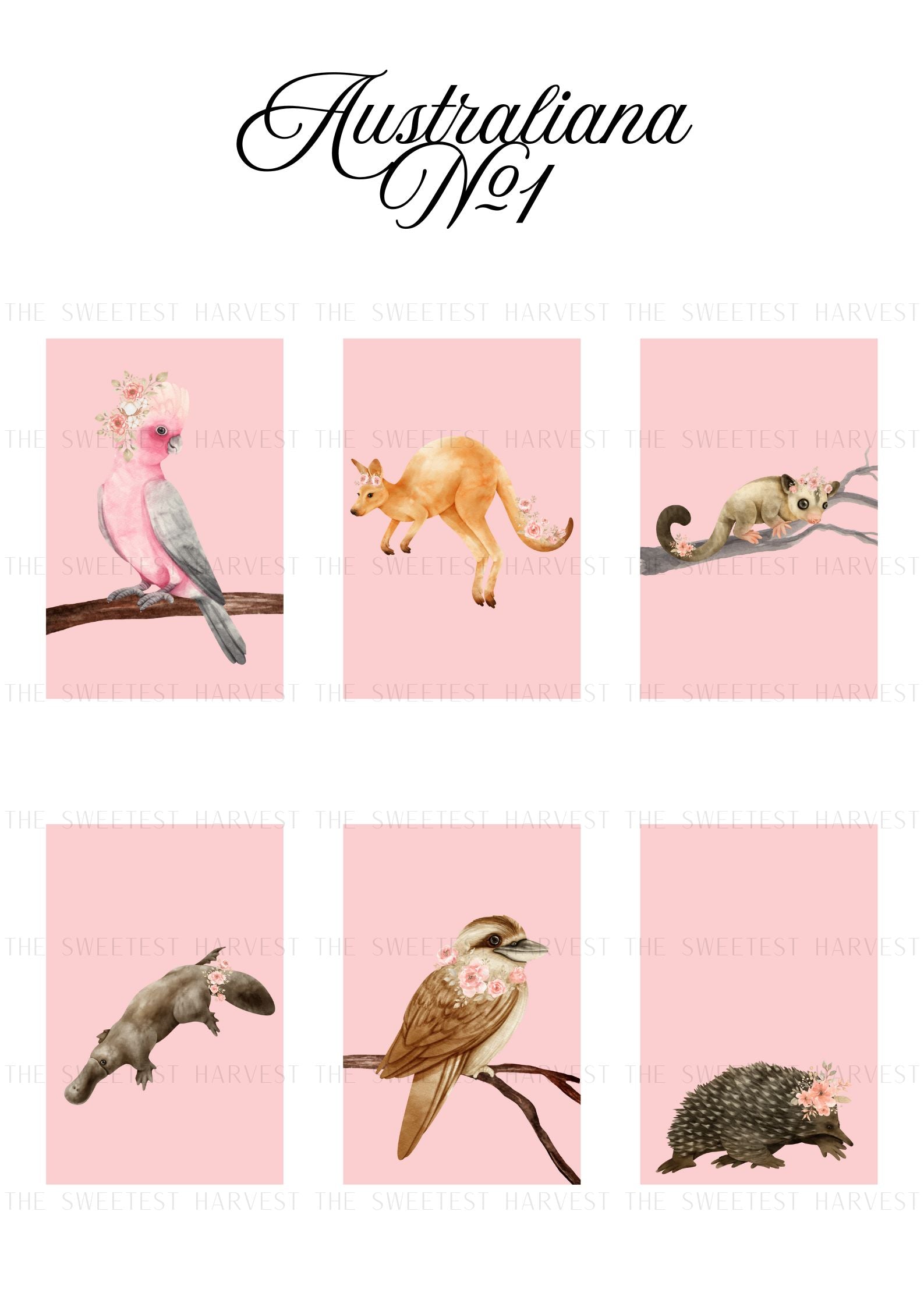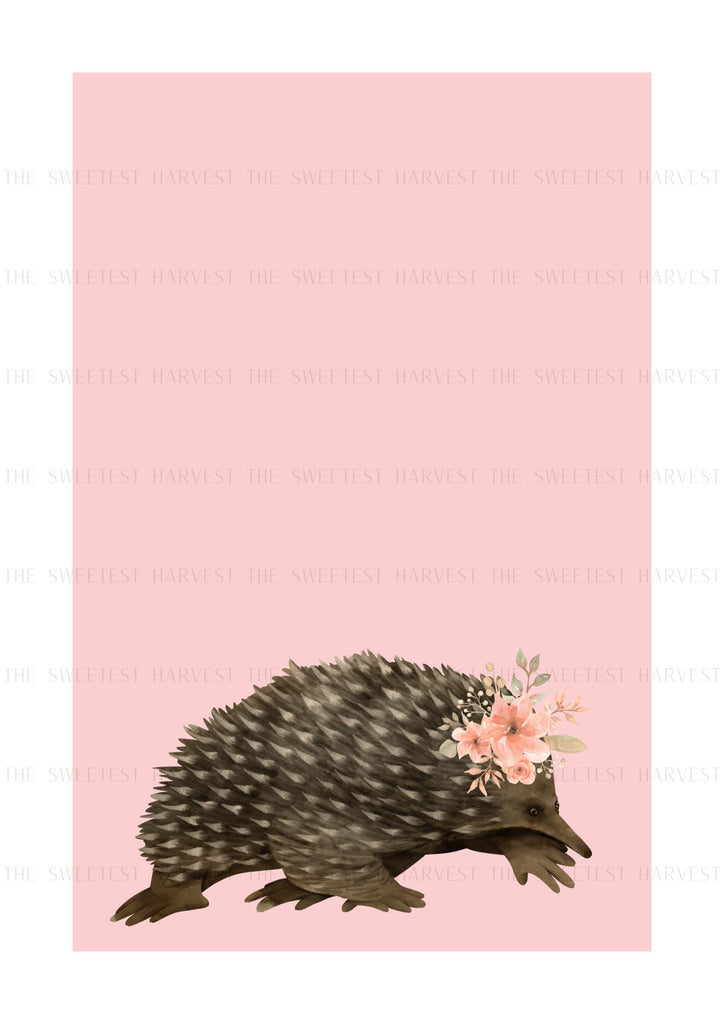 Bring the beauty of the Australian bush into your baby’s nursery with this enchanting collection of six watercolour animal prints. Collection No.1 features a Galah, Kookaburra, Kangaroo, Platypus, Possum and an Echidna.