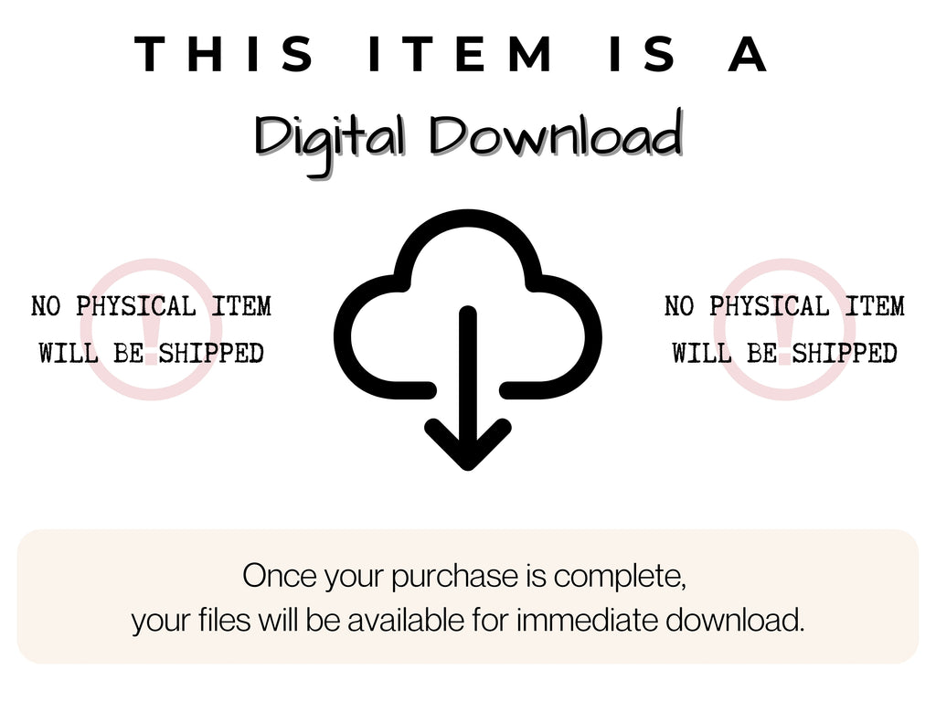 - This listing is a digital download. No physical product will be shipped.