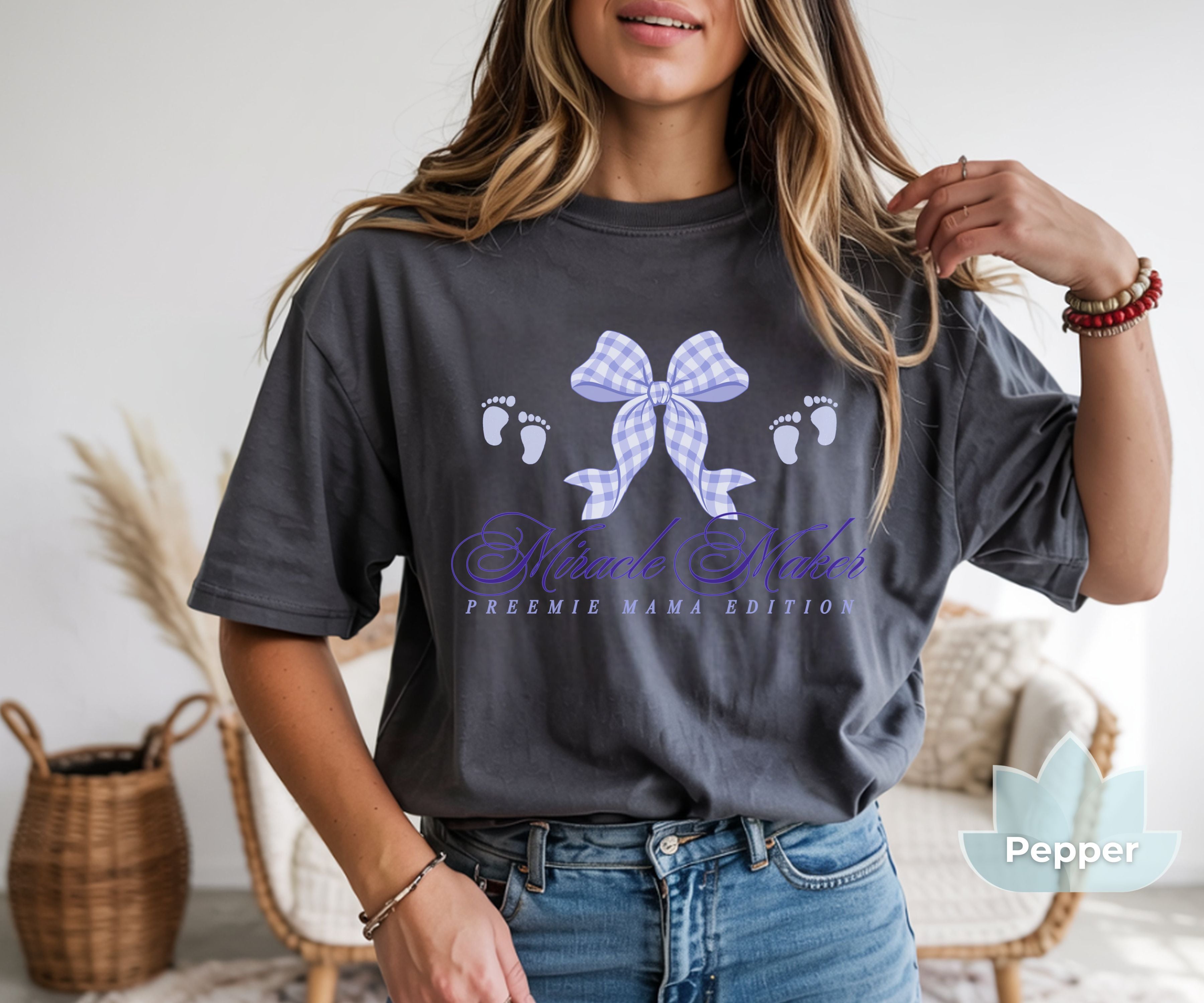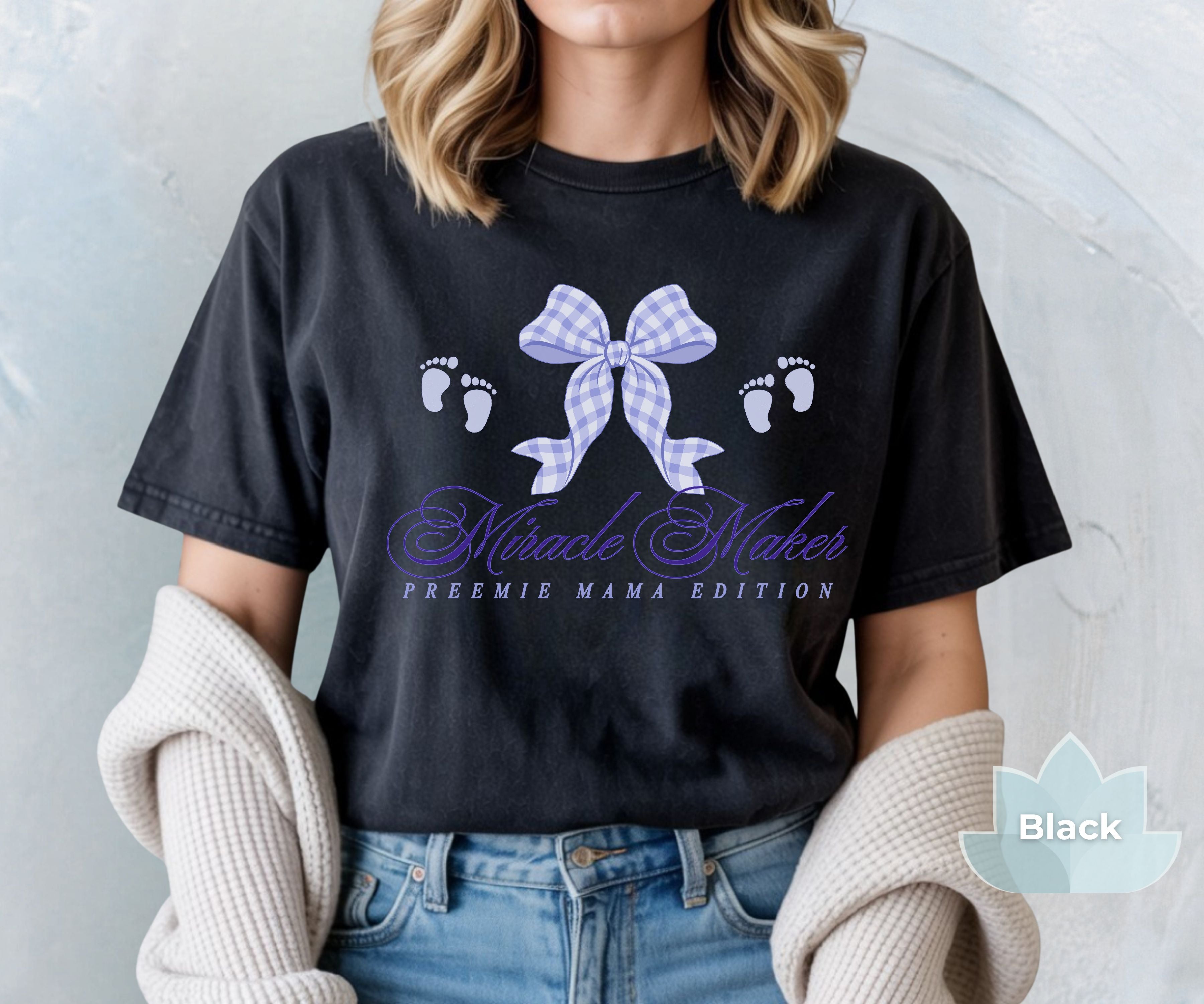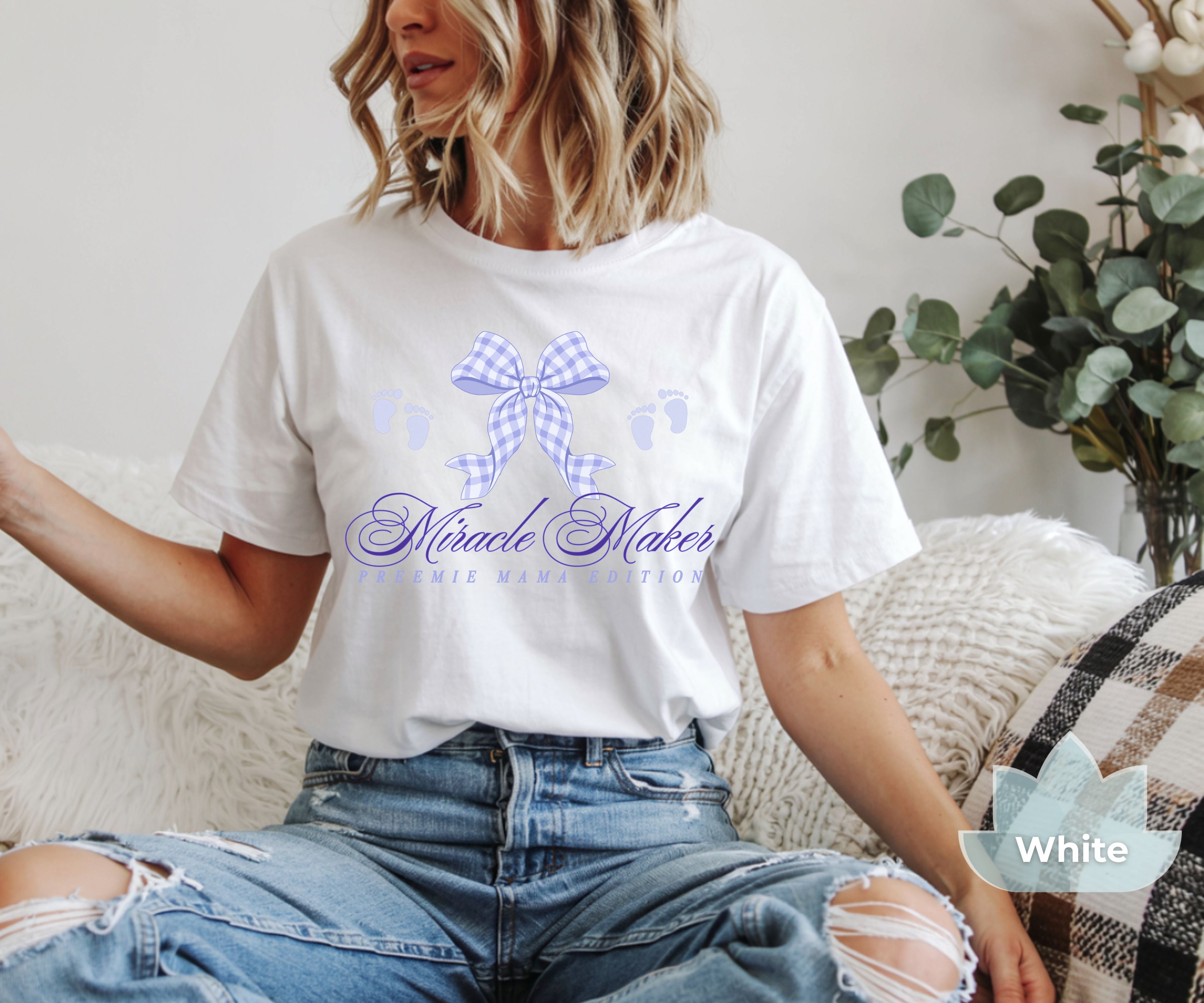Celebrate the powerful, loving journey of motherhood in the NICU with our "Miracle Maker: Preemie Mama Edition" Tee. Check out our Fit Guide in the product images for an oversized look.