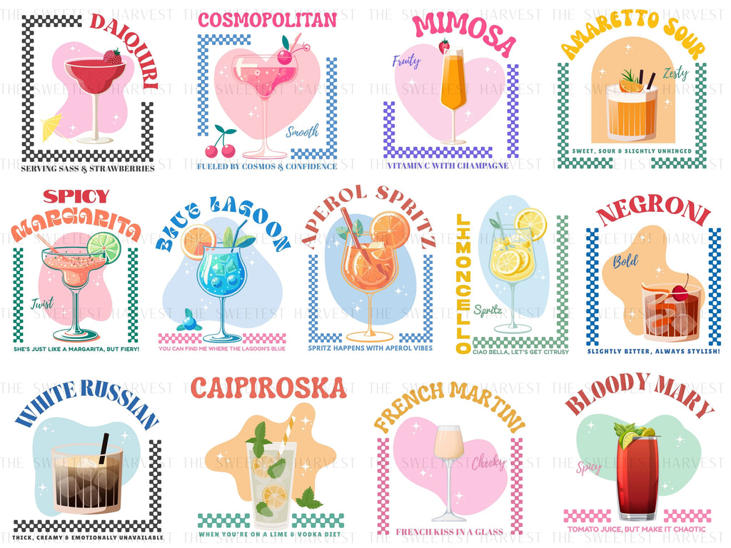 Retro Cocktails is a collection of funky vibrant images for your upcoming project.