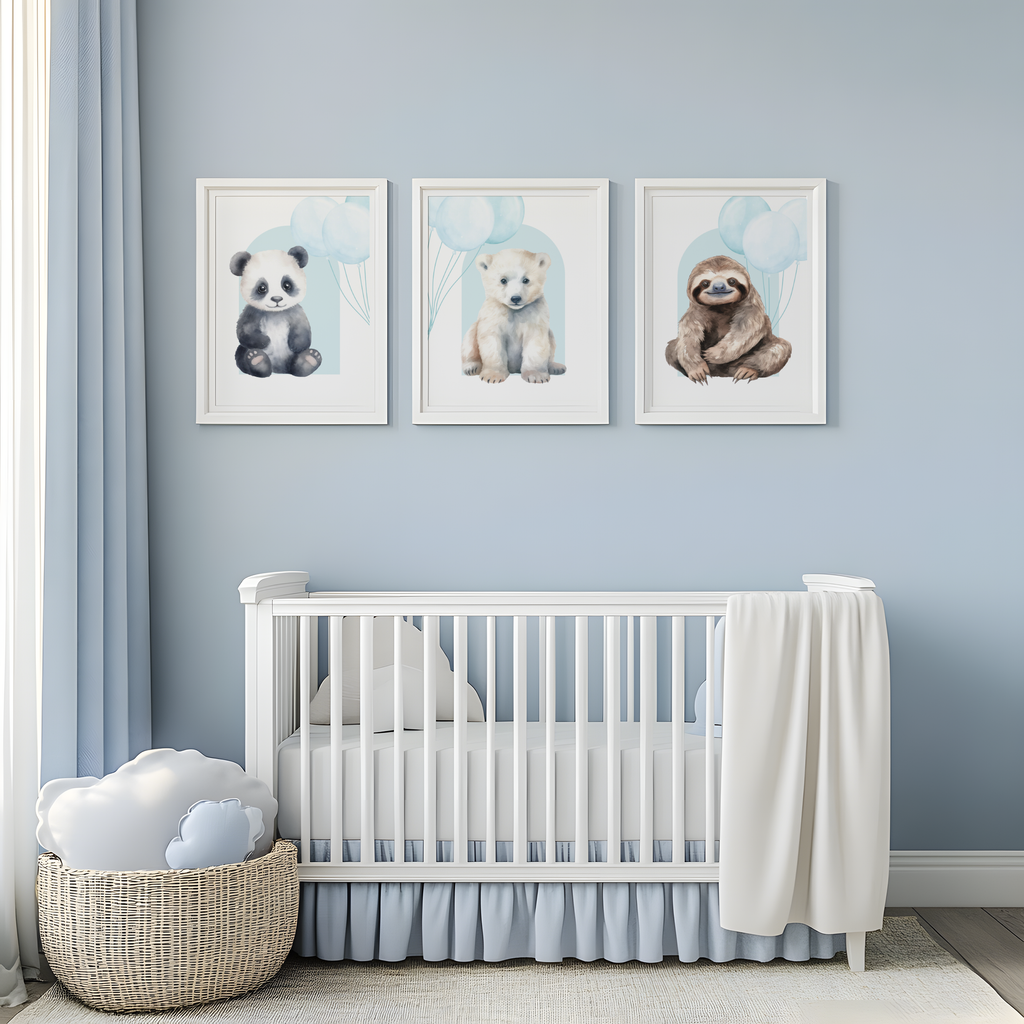 Add a touch of enchantment to your nursery or playroom with this adorable collection of 8 safari animal art prints. Select from two colour choices of Aqua/ Blue and a Neutral tone.