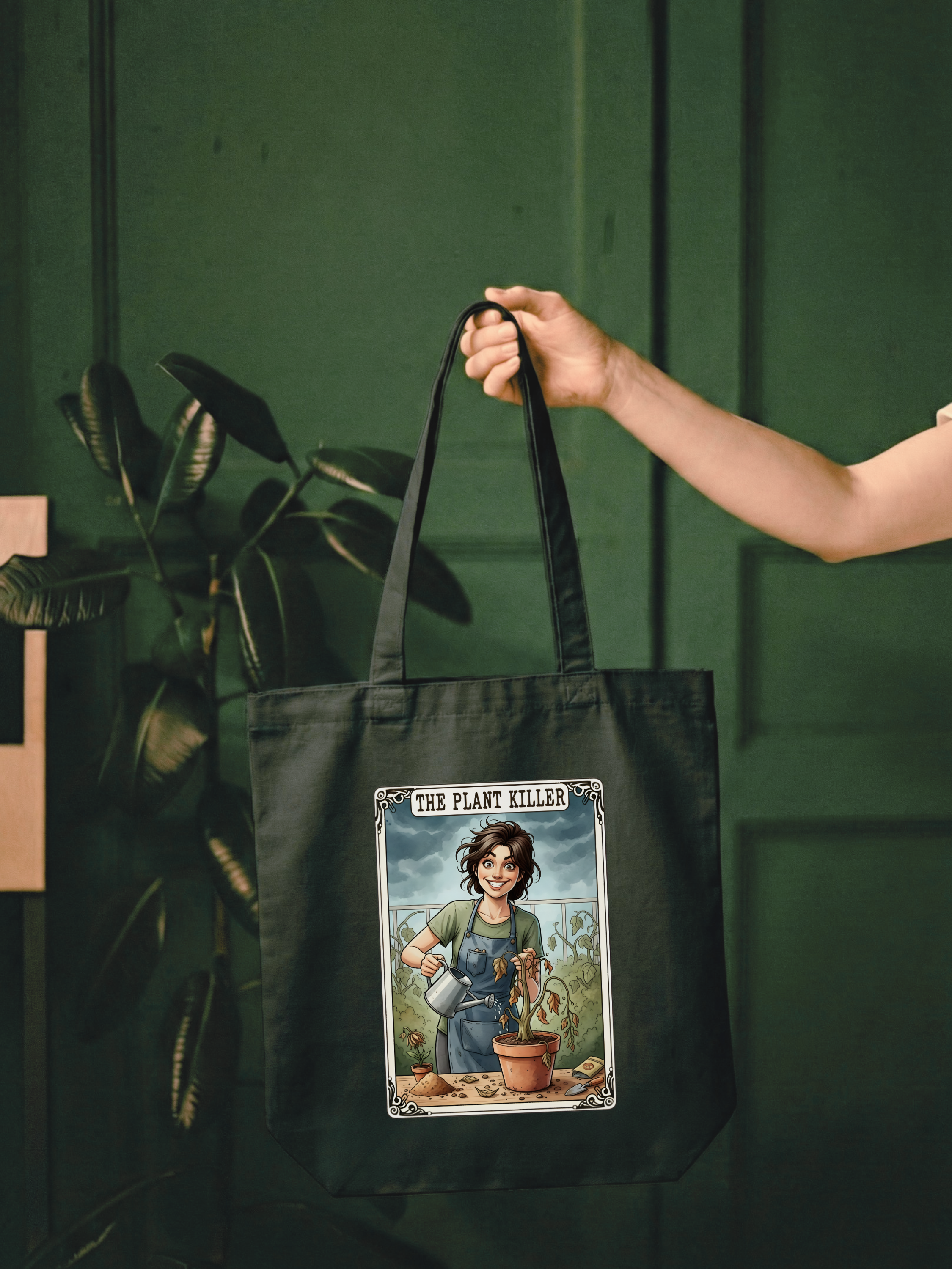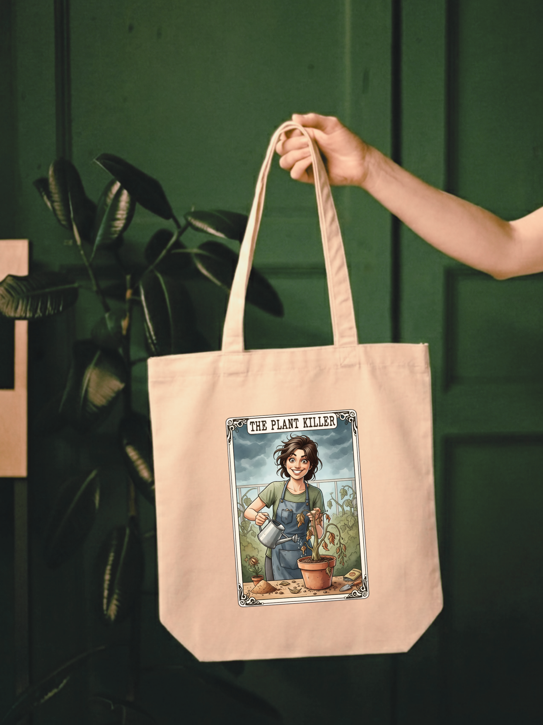 We can't all be "Plant Moms". For those of us who possess a lethal touch when it comes to greenery, this "The Plant Killer" Tarot Card tote bag is your official accessory. Discover the perfect blend of style and functionality with our cute organic cotton tote.