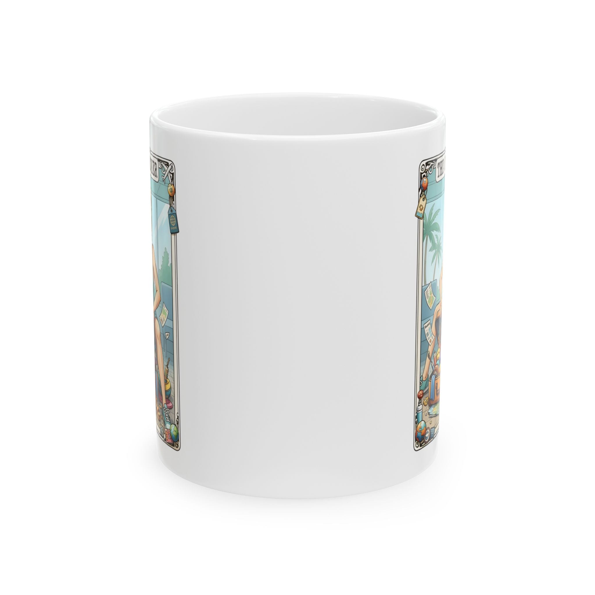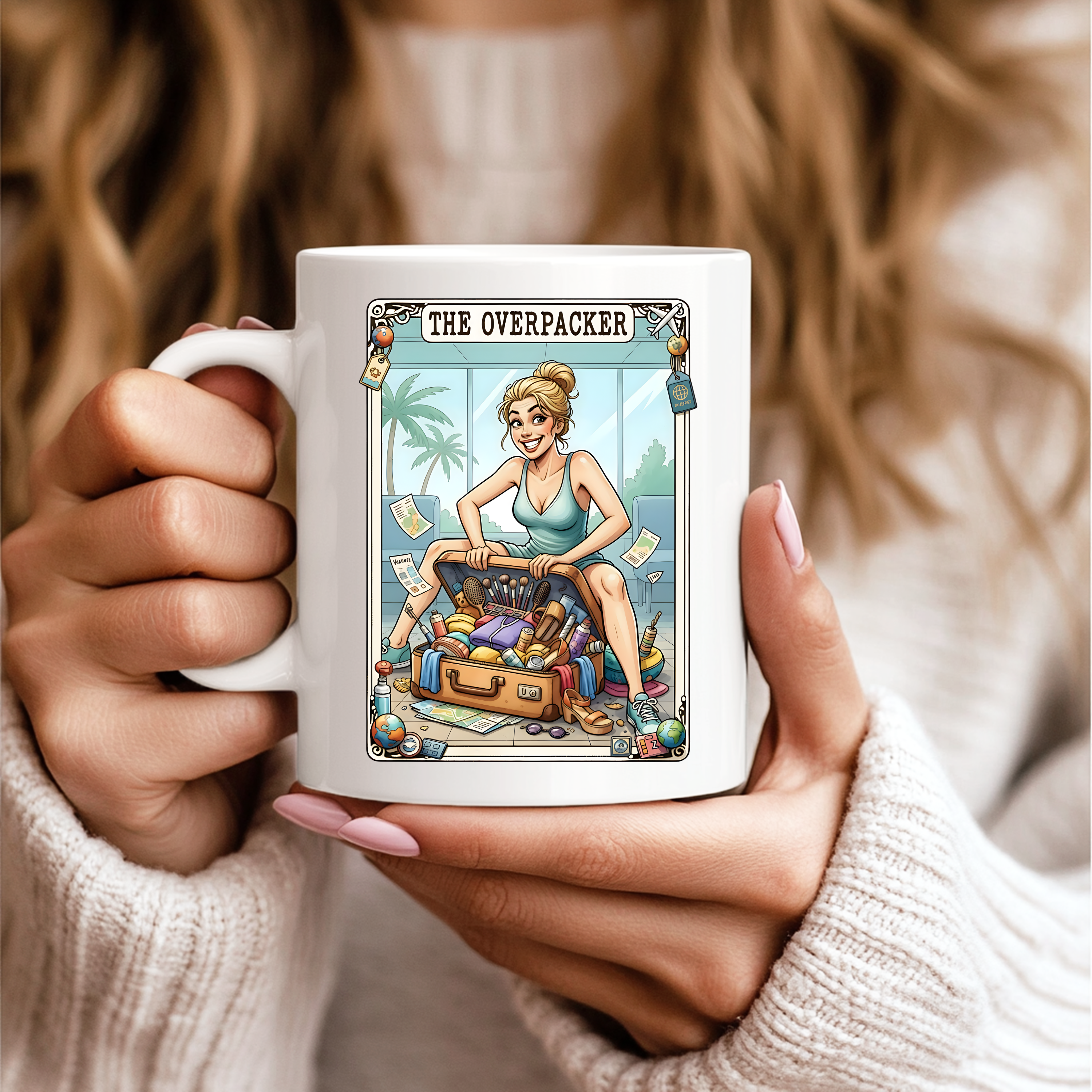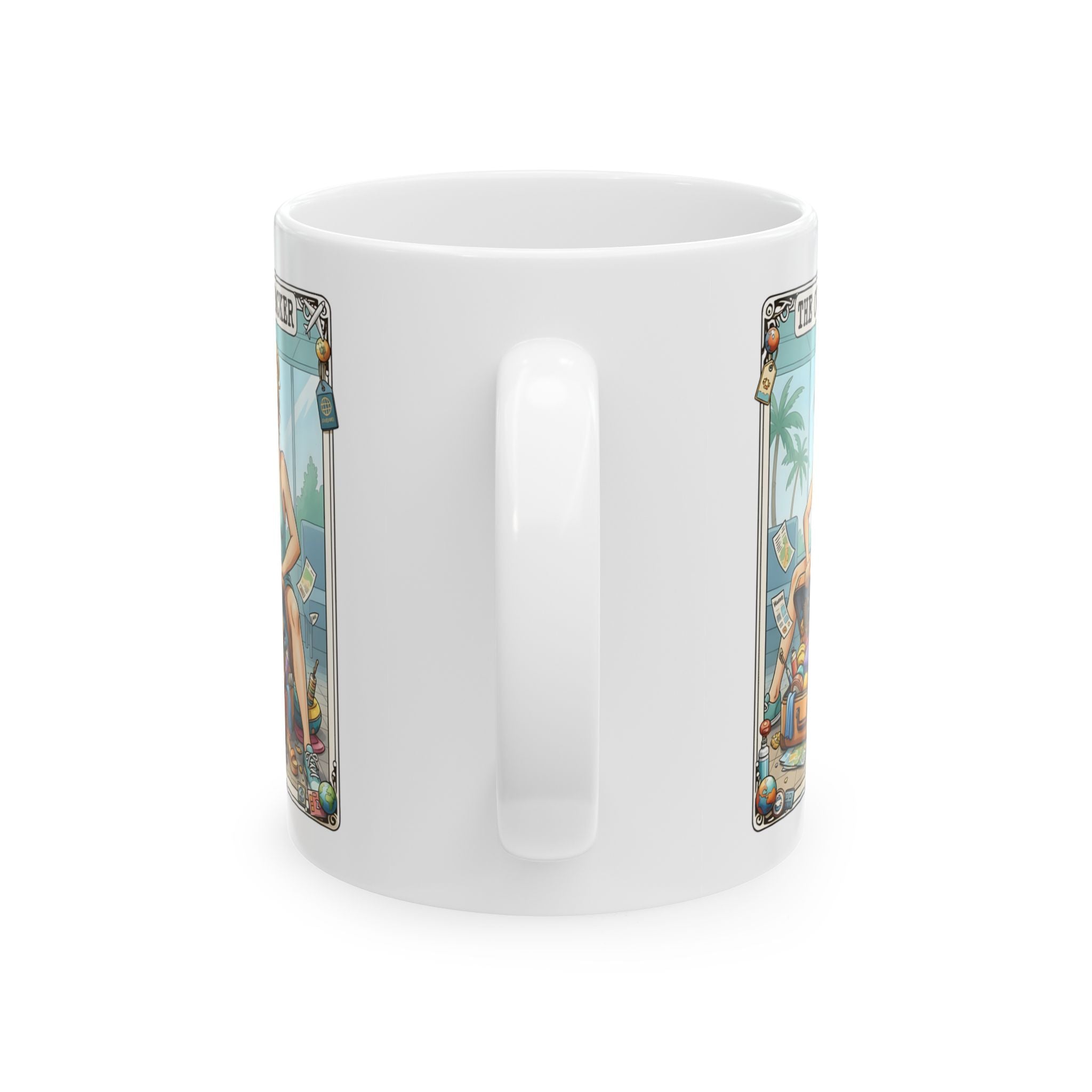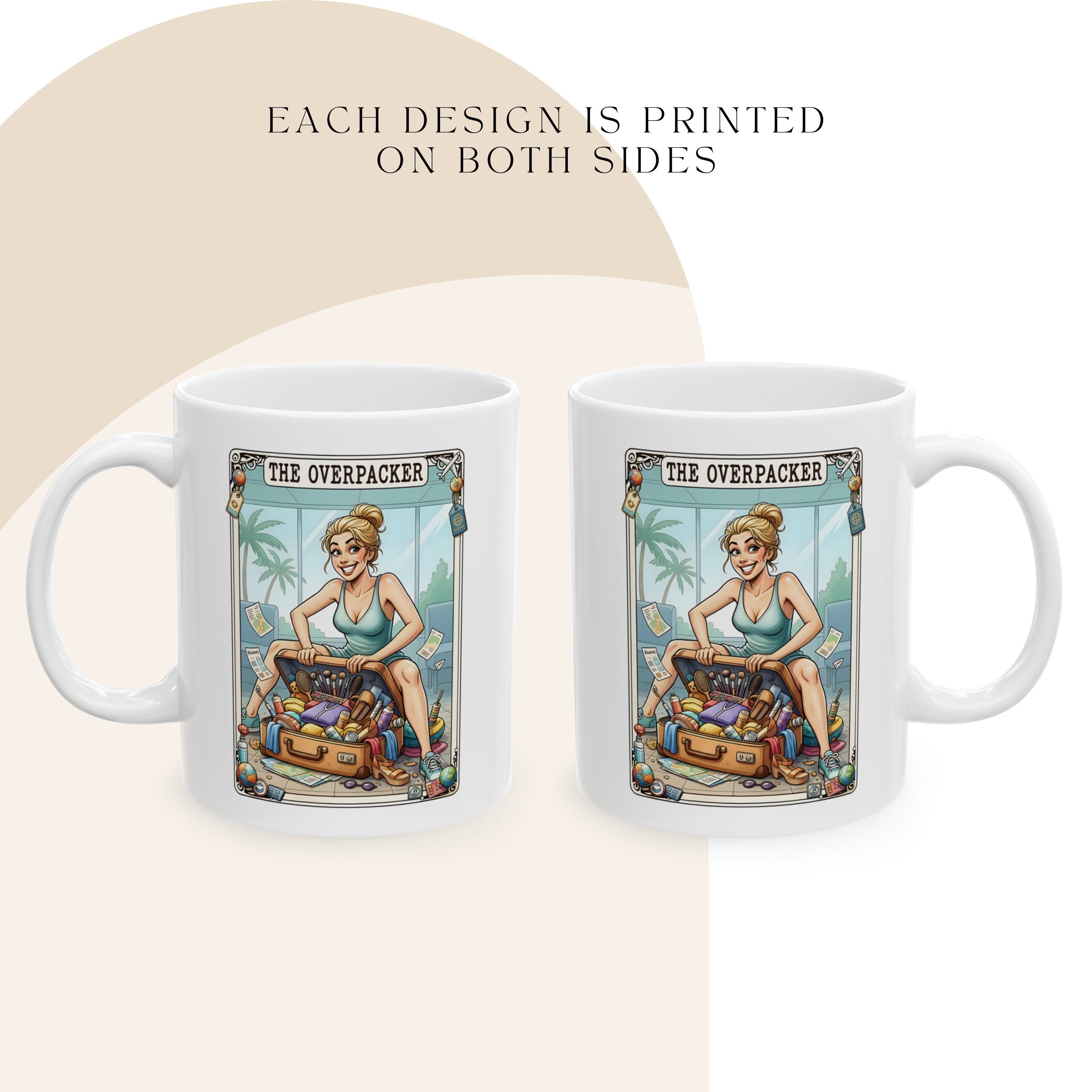 Start your day with a dose of humour with this taro card Overpacker mug. This mug is the perfect for morning coffee, pre-flight caffeine or dreaming about your next getaway. Crafted from high-quality ceramic, this durable mug is microwave and dishwasher safe, making it both practical and stylish.