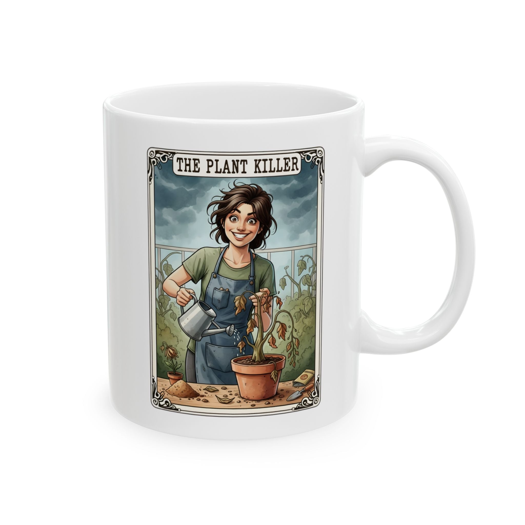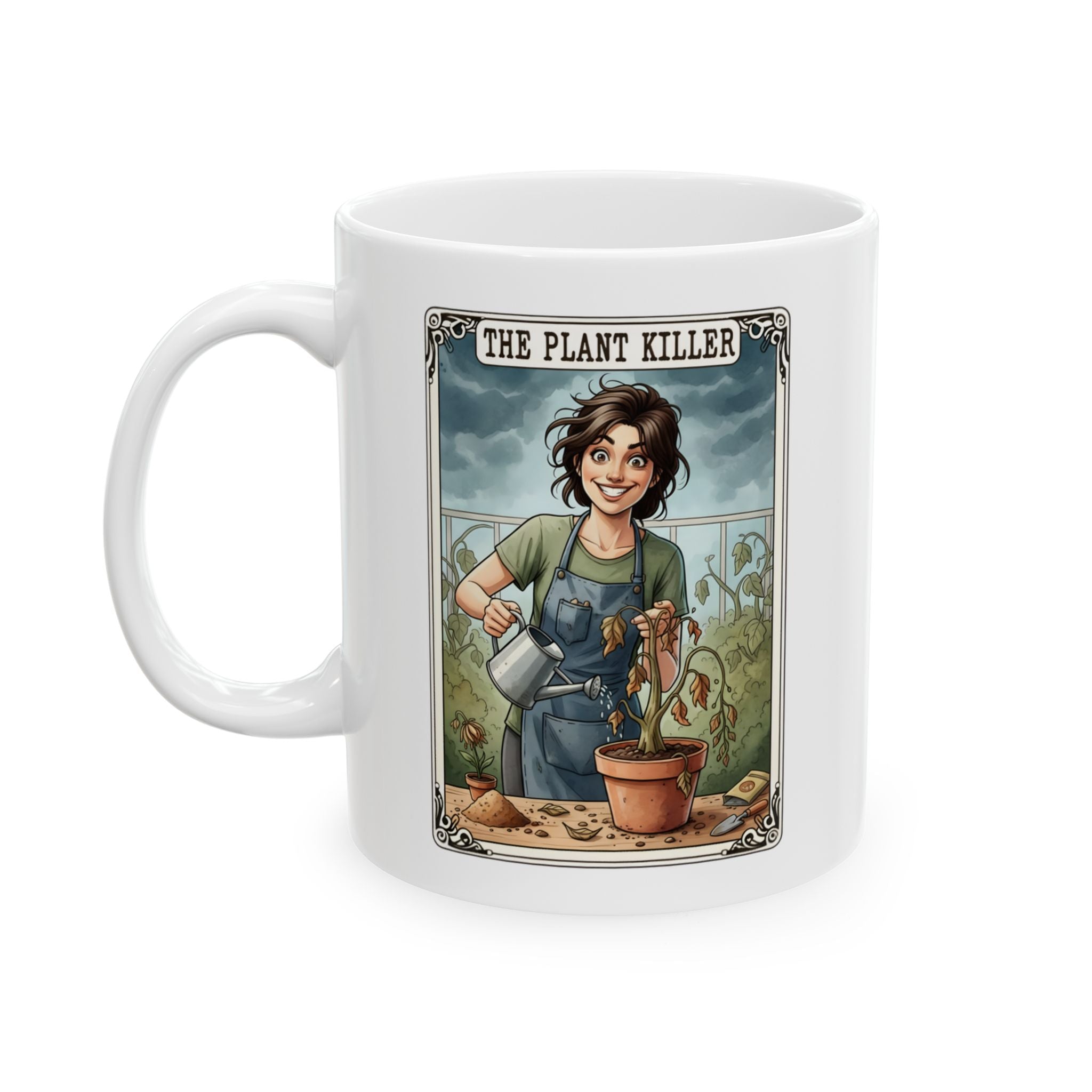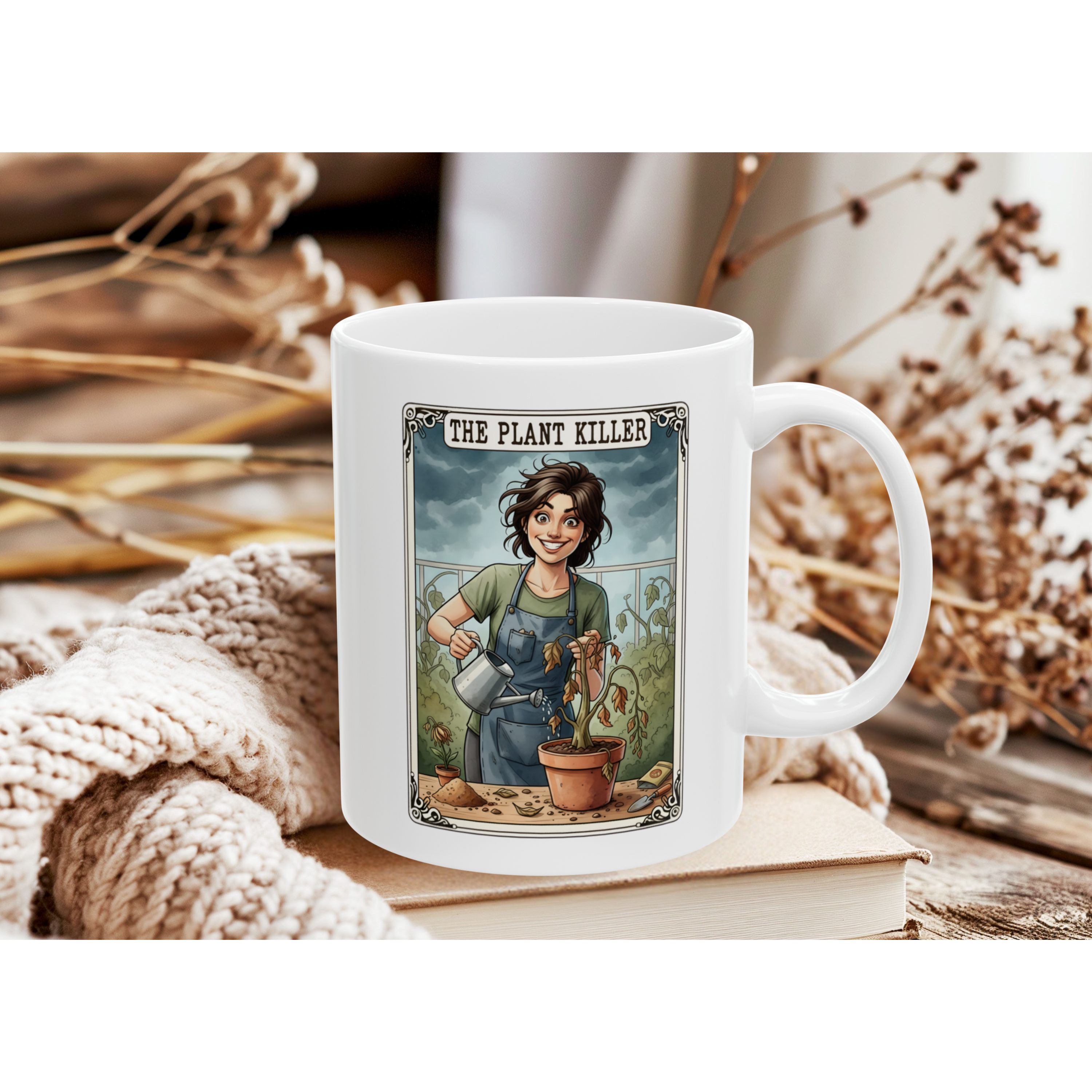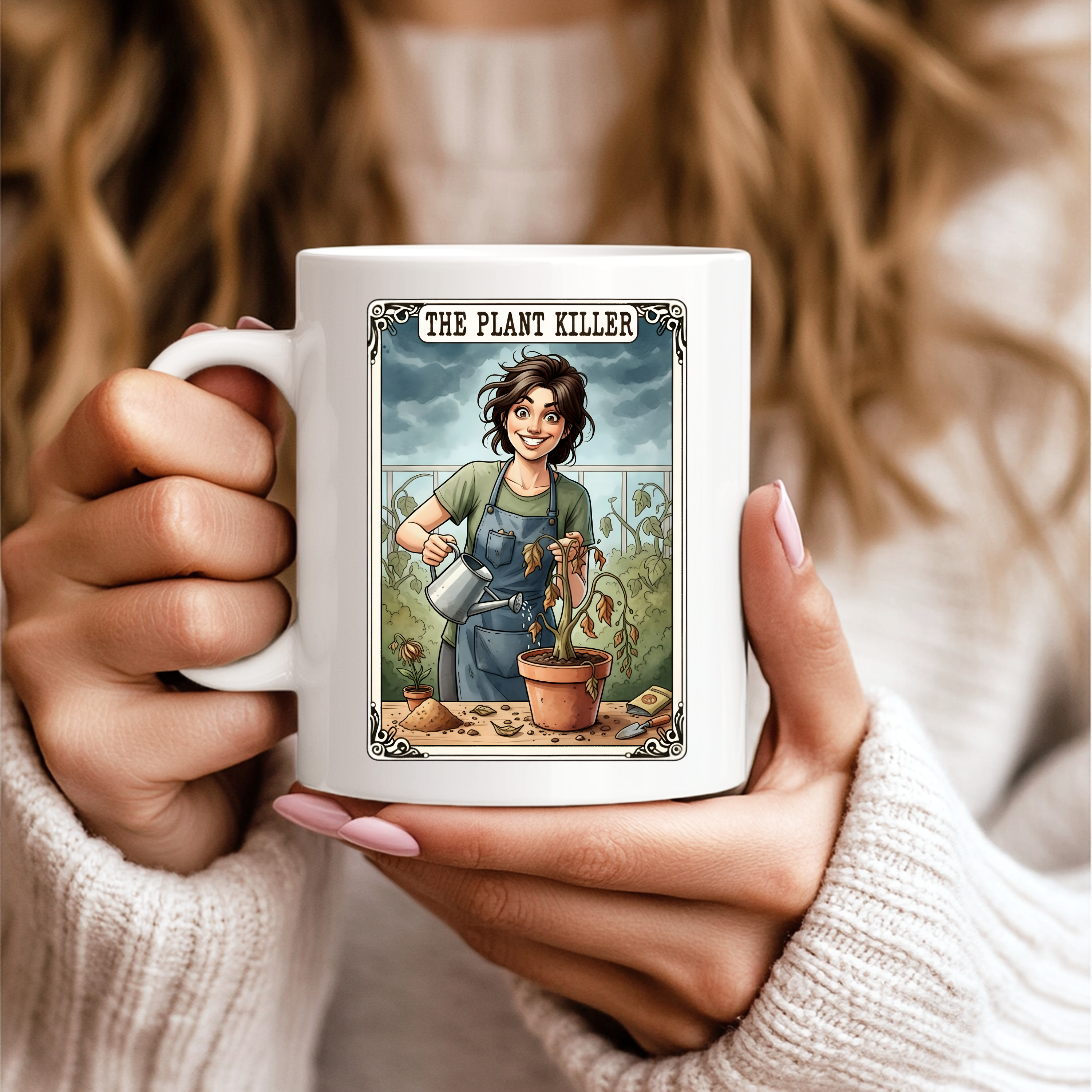 Start your day with a dose of humour with this taro card Plant Killer Mug. This mug is the perfect for morning coffee, tea breaks or gifting to the friend who owns 47 pots and zero thriving plants. Crafted from high-quality ceramic, this durable mug is microwave and dishwasher safe, making it both practical and stylish.