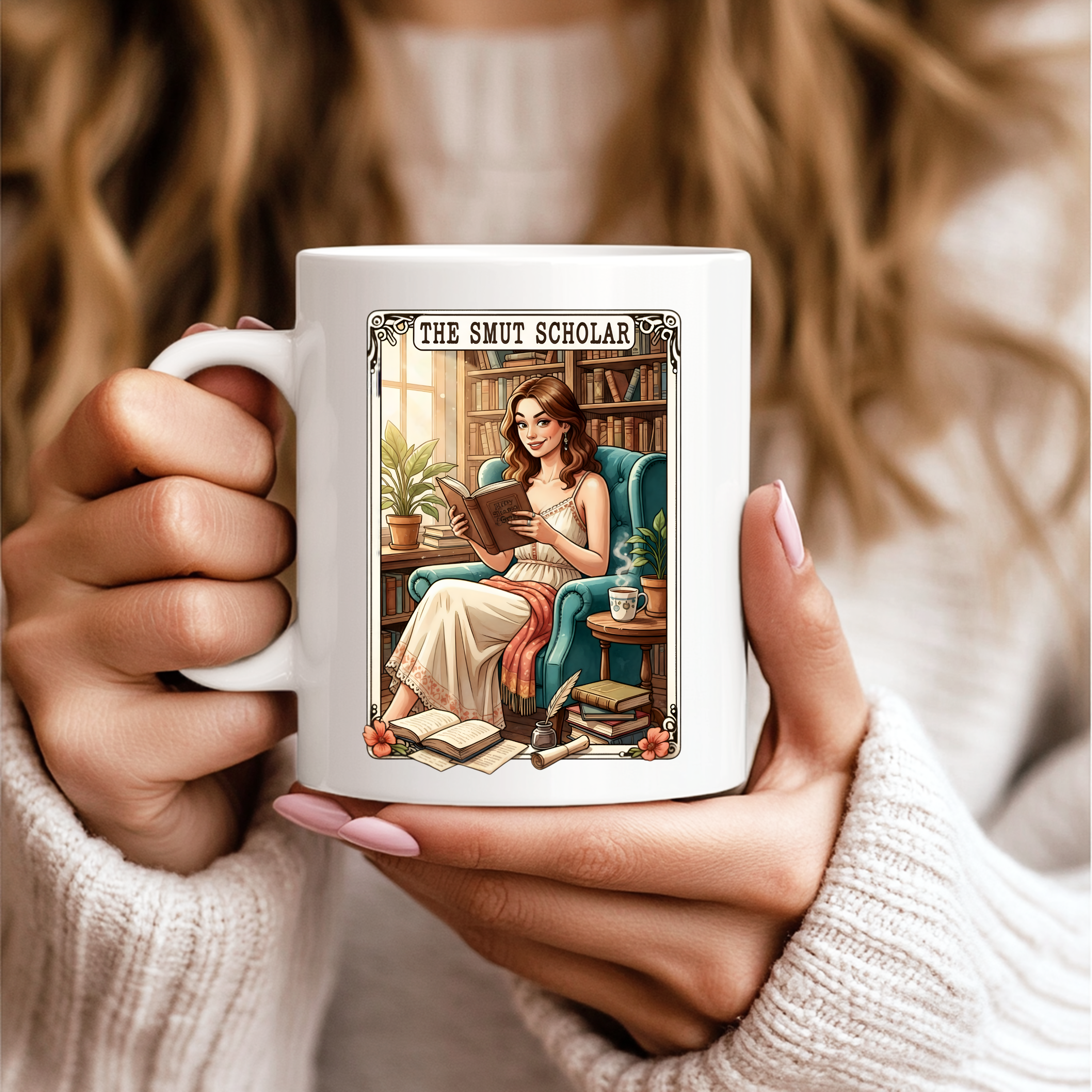 Start your day with a dose of humour with this taro card Smut Scholar Mug. This mug is the perfect vessel to compliment your next book read. Crafted from high-quality ceramic, this durable mug is microwave and dishwasher safe, making it both practical and stylish.