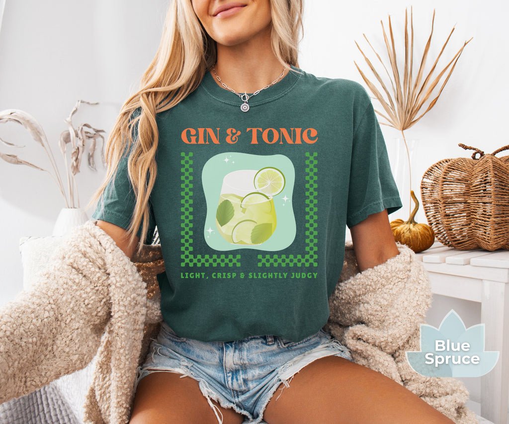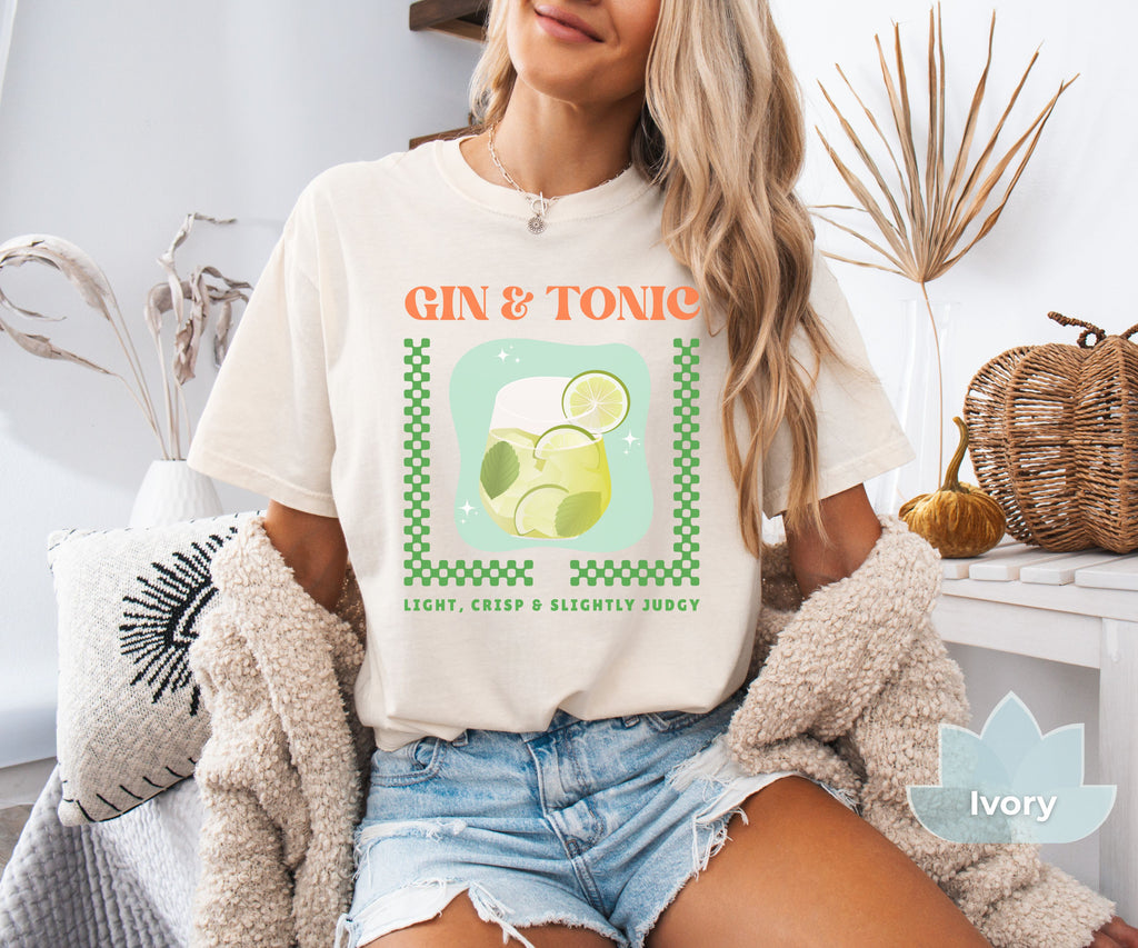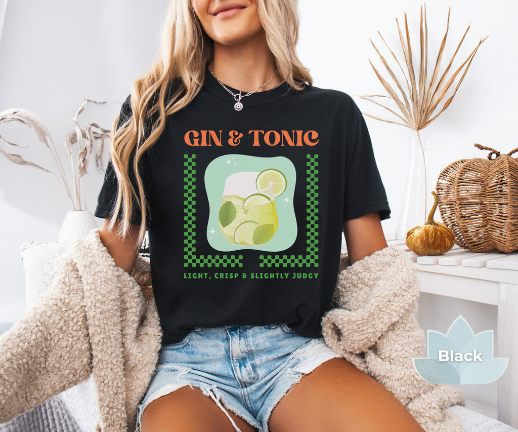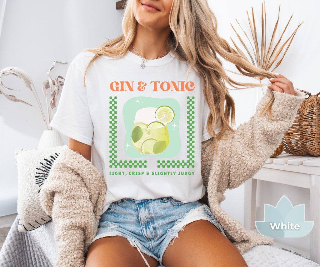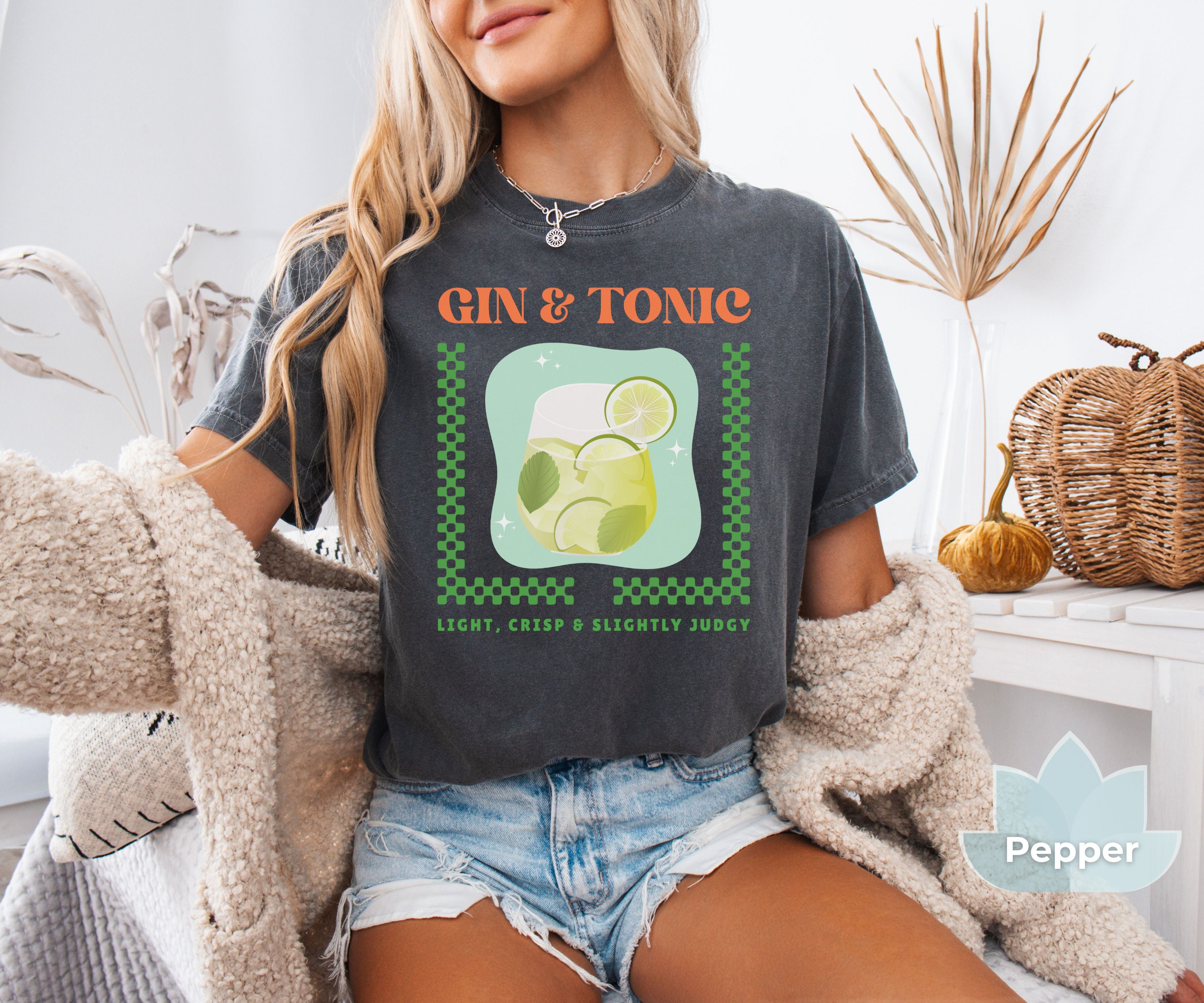 Perfect for that Gin & Tonic girly - "Light, Crisp & Slightly Judgy". Our T-shirts are garment-dyed for that unique worn look and don't forget to check out our Fit Guide in the product images for an oversized look.