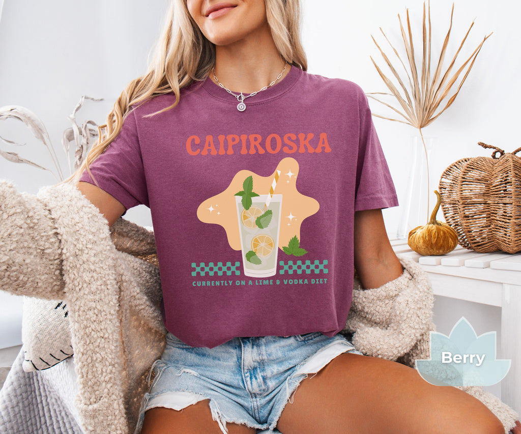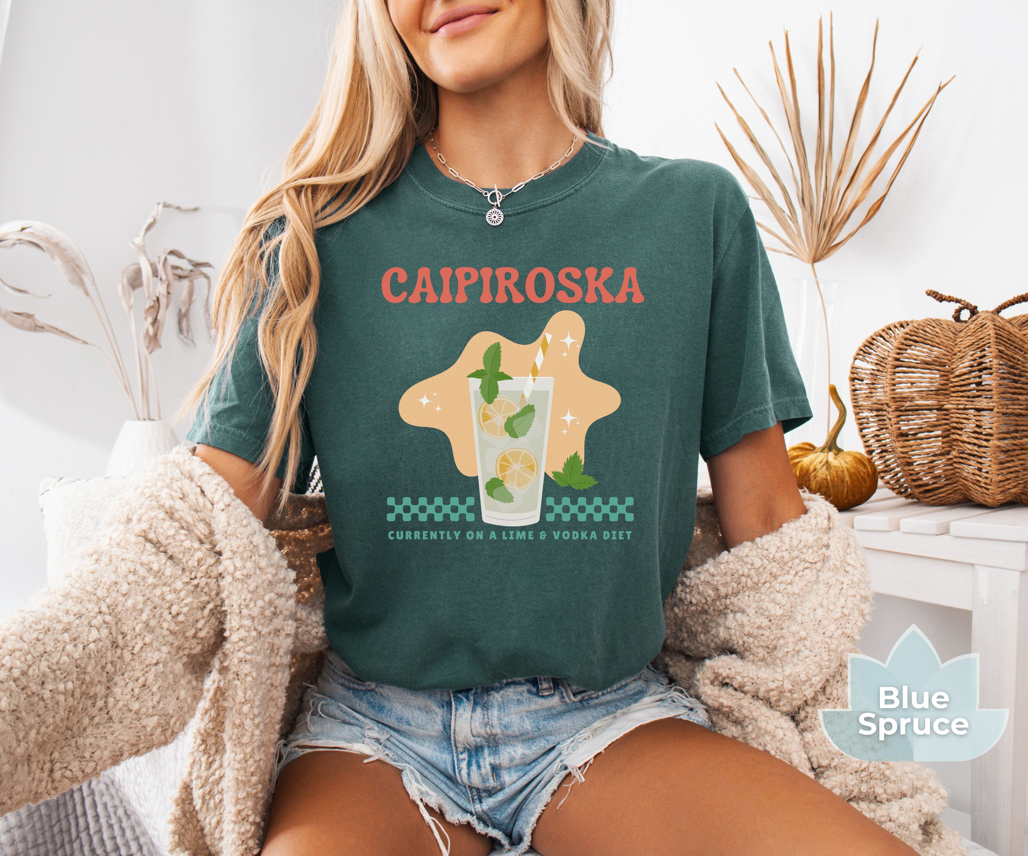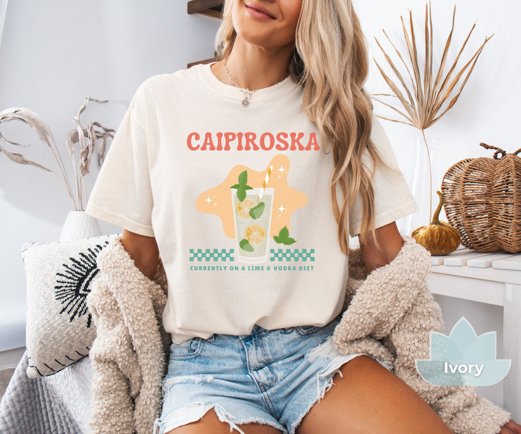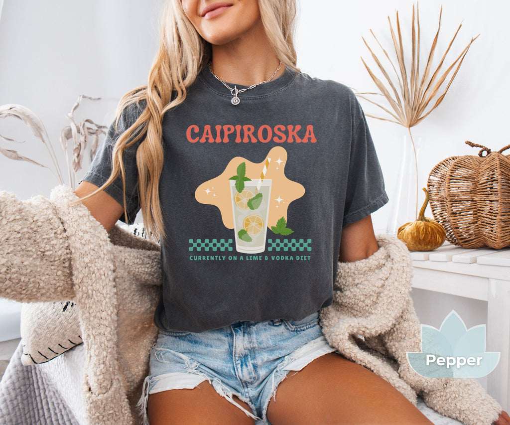 Our fun and flirty “Caipiroska - Currently on a Lime & Vodka Diet” tee is the perfect shirt for your party alter ego. Our T-shirts are garment-dyed for that unique worn look and don't forget to check out our Fit Guide in the product images for an oversized look.